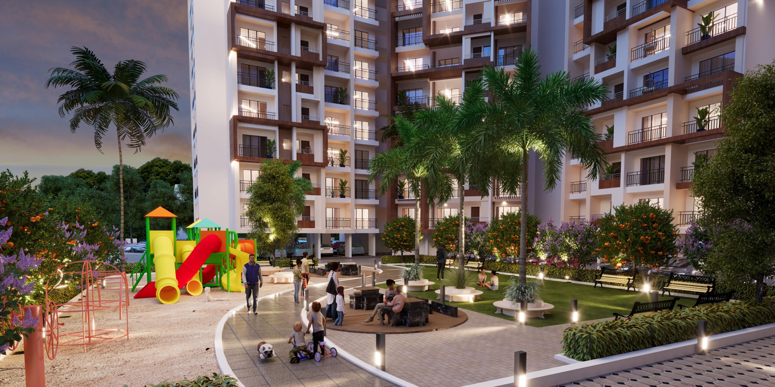 Clubhouse, swimming pool, multi-purpose hall, landscaped gardens, and kids’ play areas for a vibrant community life.